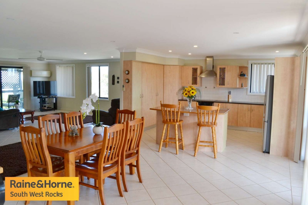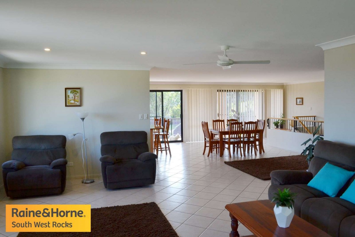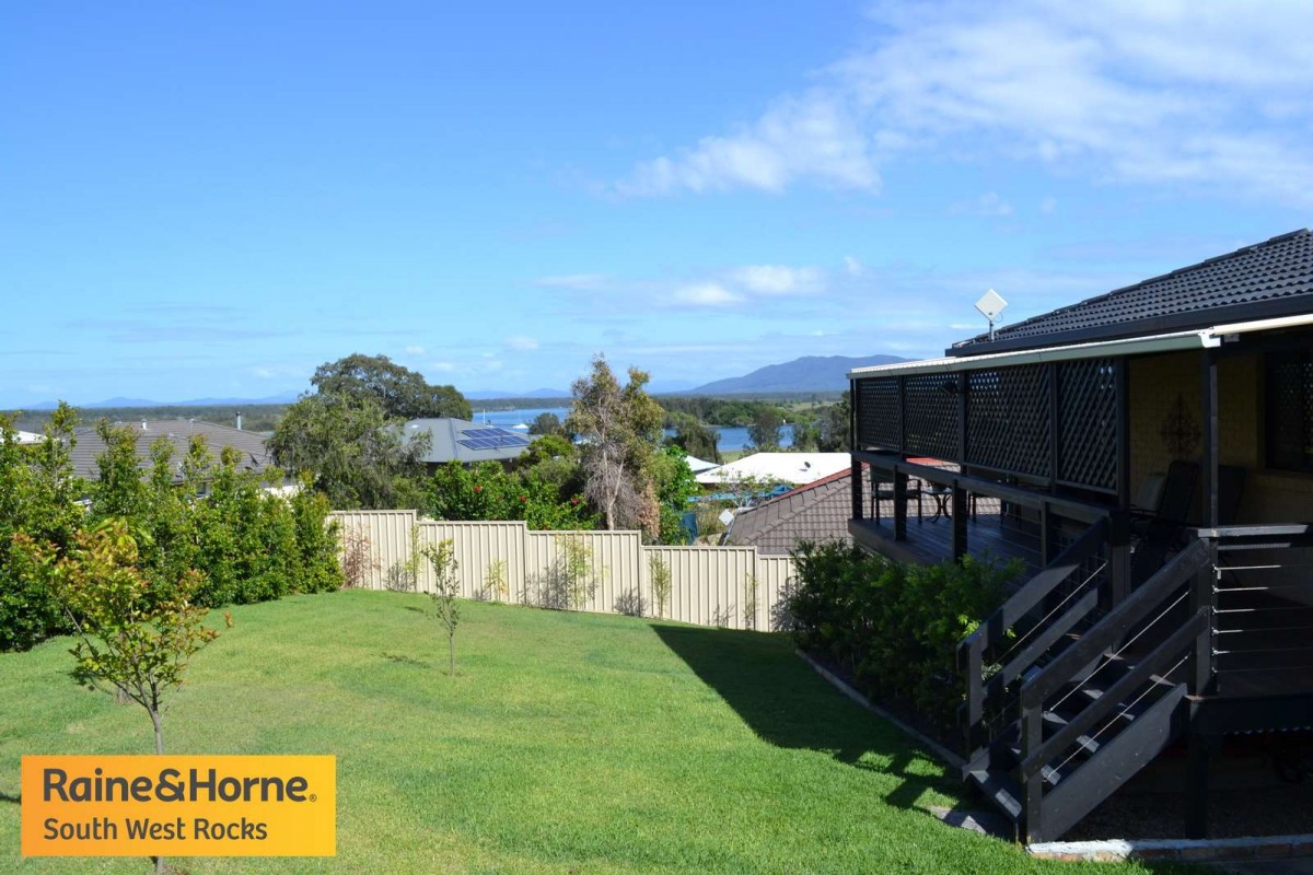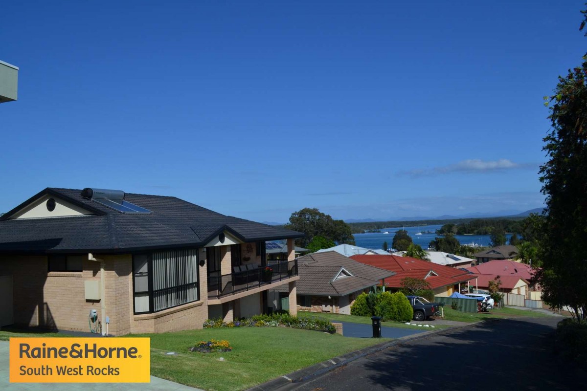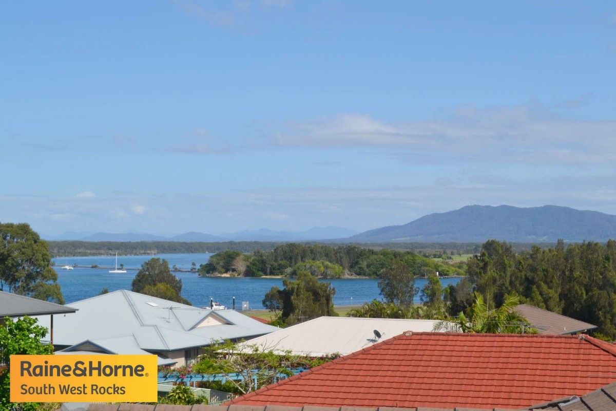South West Rocks when only the best will do. In a class of it's own with panoramic river & mountain views. This four bedroom, three bathroom, brick & tile home is as neat as a pin & nothing to do. The master bedroom is very large with walk-in robe and large ensuite, the other two bedrooms upstairs have built-ins and are a good size. The home is open plan living with big dining area, large kitchen & spacious lounge area with views looking down on the river. Downstairs there is parking for 3 cars and an extra bedroom with ensuite, office & plenty of storage.