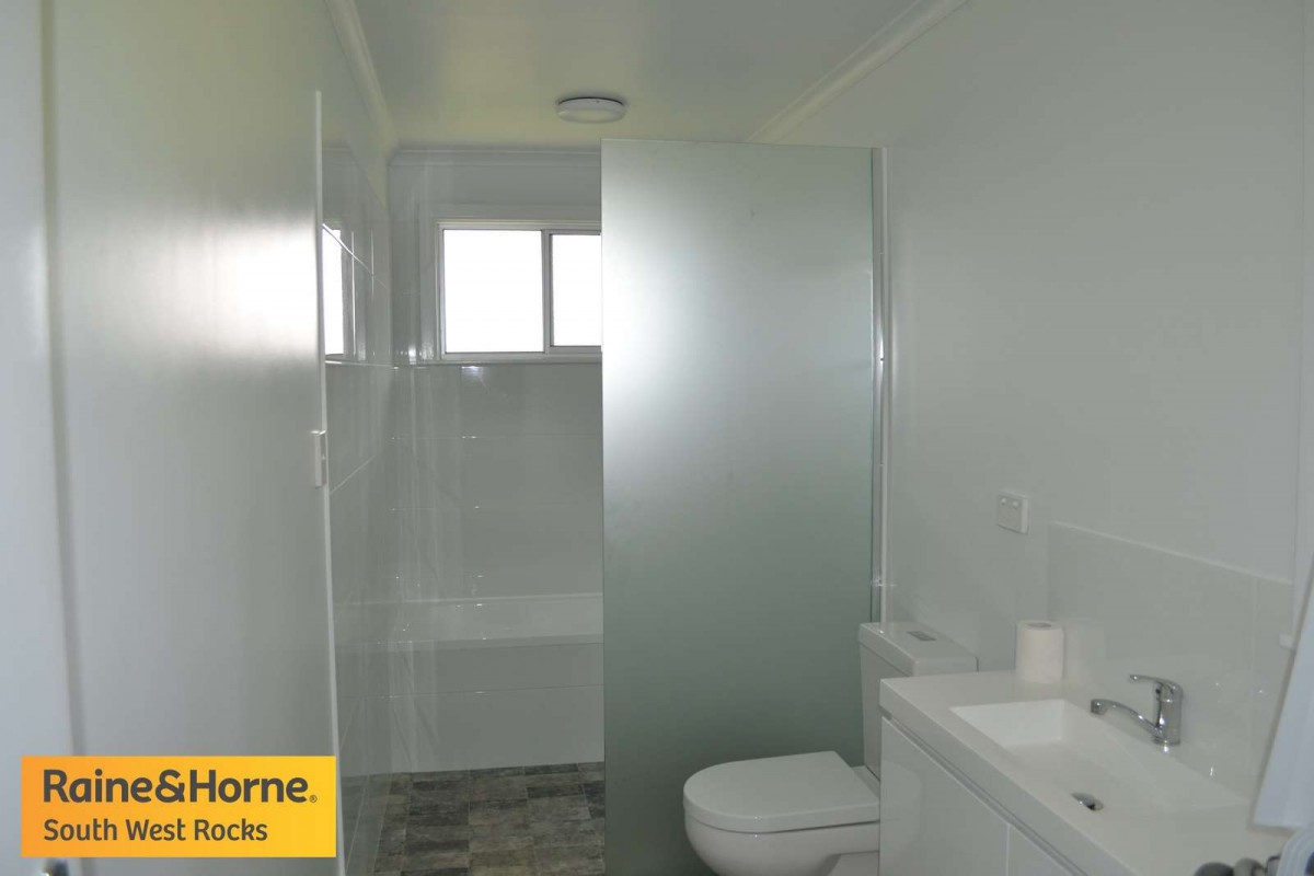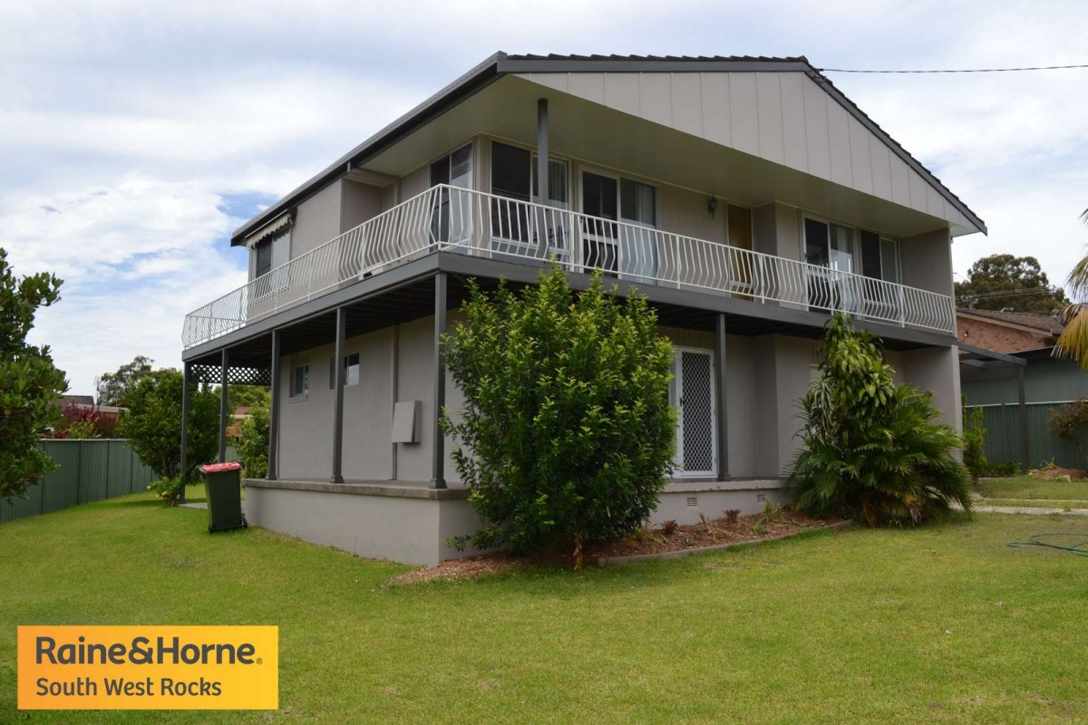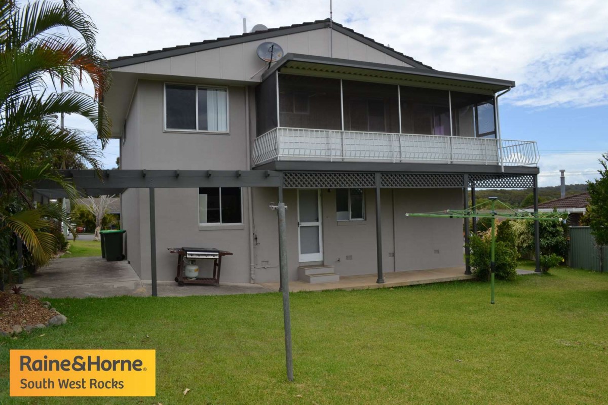 Freshly renovated four bedroom, two bathroom home, located in a sought after position of South West Rocks. The home on a great block of 573m2 has easy rear yard access with ample room for your caravan, boat or extra sheds. Downstairs is two bedrooms, bathroom laundry, garage and balcony areas. Upstairs is another two bedrooms, kitchen, bathroom, living areas, screened sunroom and verandahs. A solid built house in a great locale ready for your investment. Inspections available anytime.